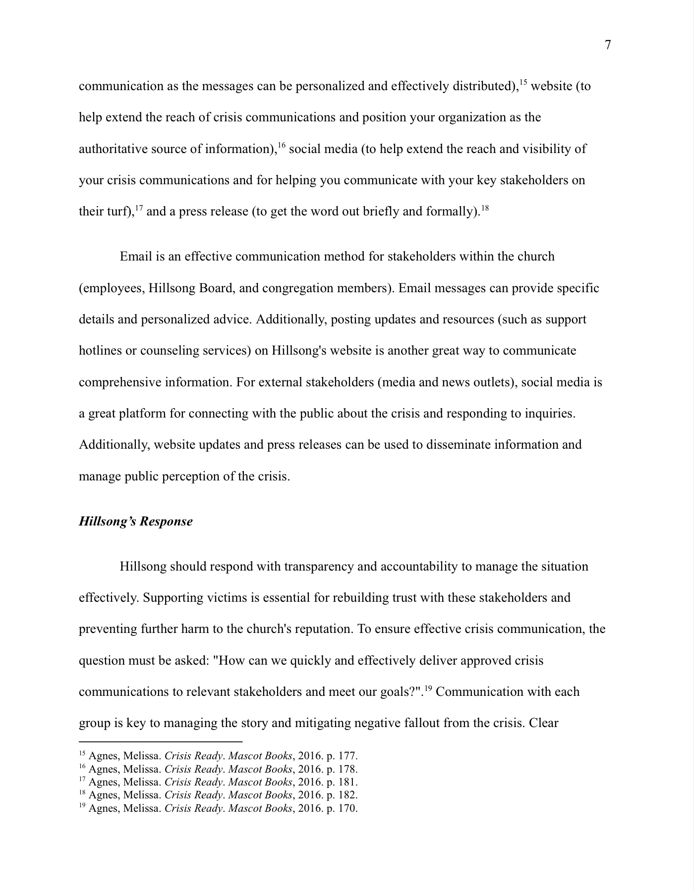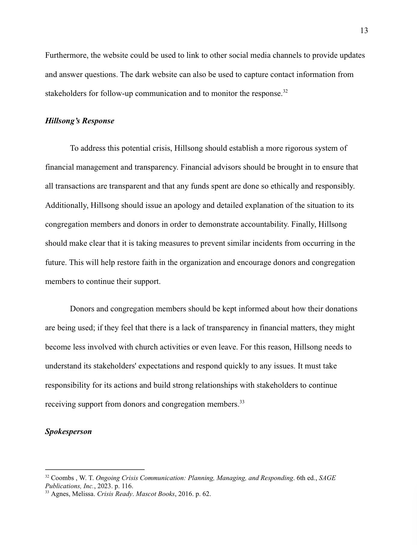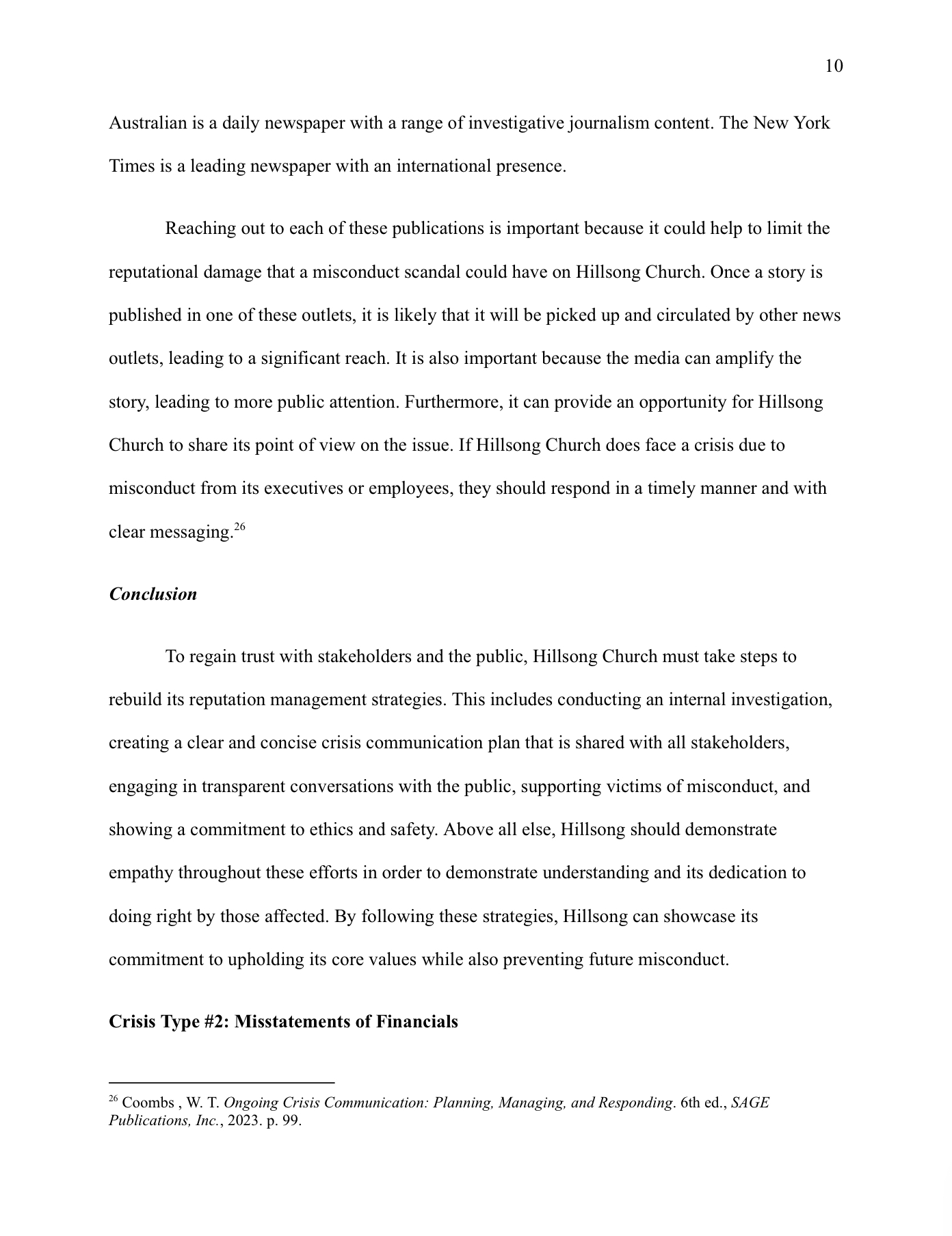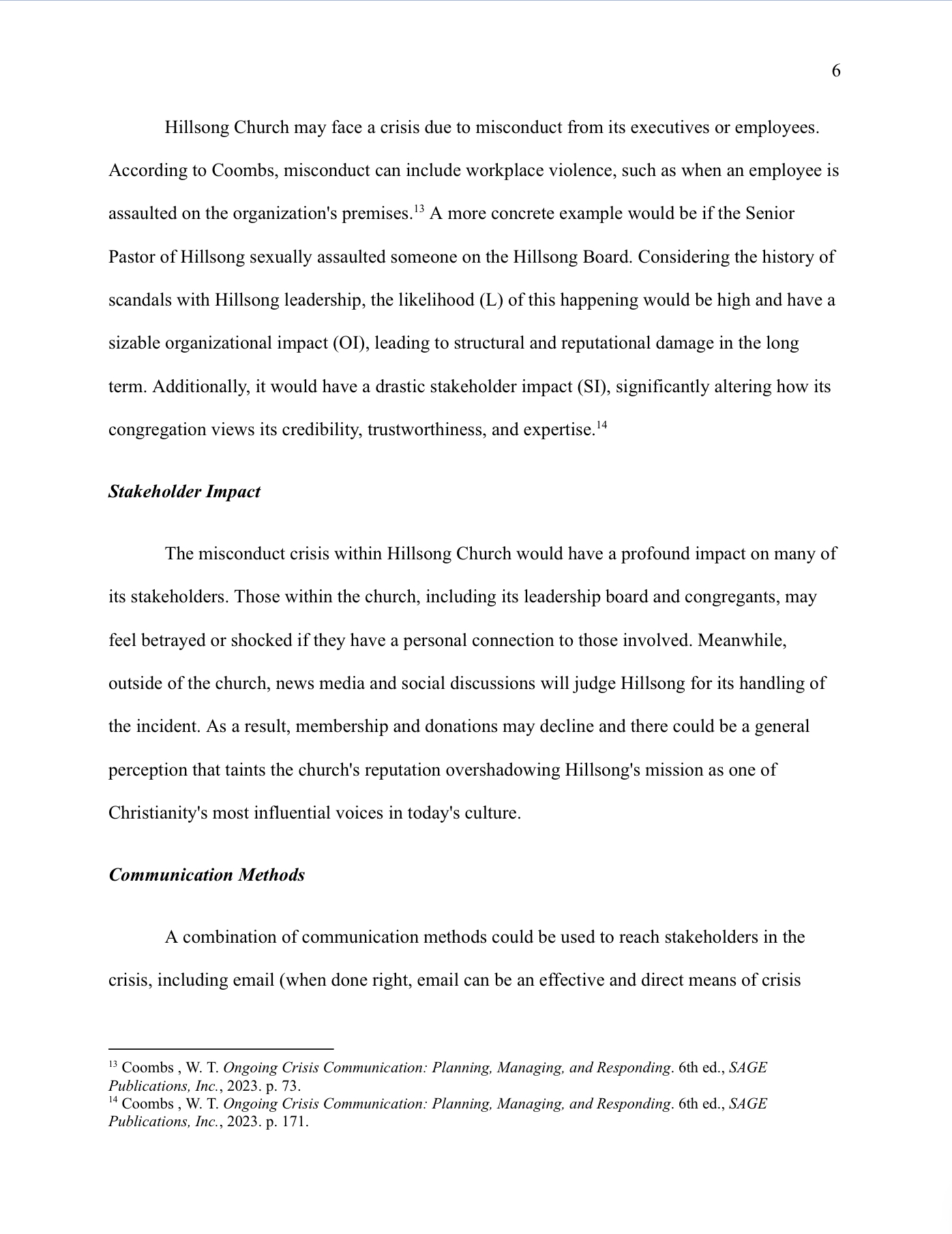 In Professor Brenda V. Ross‘ course on Crisis Communication and Reputation Management, we developed a Crisis Portfolio that outlines a comprehensive crisis plan for an organization of our choice. For my Crisis Portfolio, I chose Hillsong Church, unpacking its background, potential crises, stakeholders, communication strategies, ideal spokespersons, and response plans. I’m thankful to Brenda V. Ross for guiding me through this portfolio! She showed me what it means to think like a PR professional – to be empathetic, think outside of the box, and develop effective and efficient strategies to manage a crisis if/when it arises.