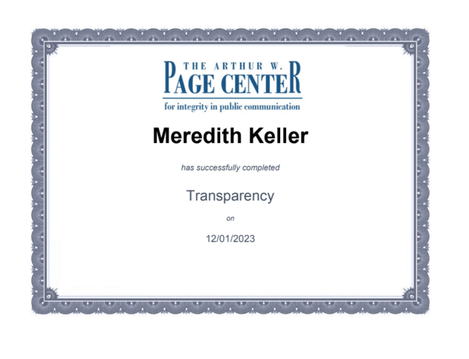 Gained insight in transparency, honesty, accuracy, disclosure (full & limited), two-way communication, Page Principles & PRSA guidelines and legal & regulatory requirements.