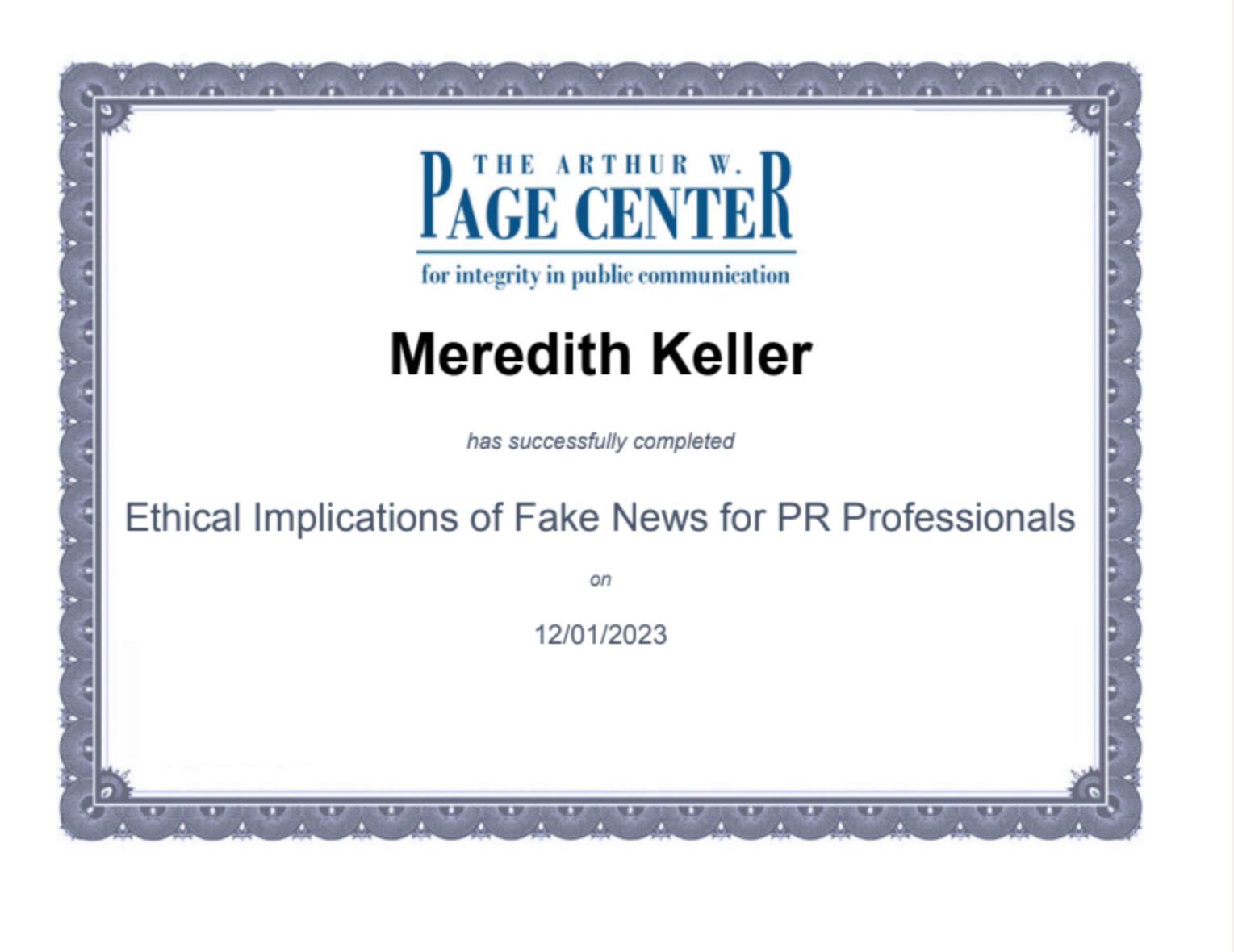 Currently Working Toward: Accreditation in Public Relations (May 2025)