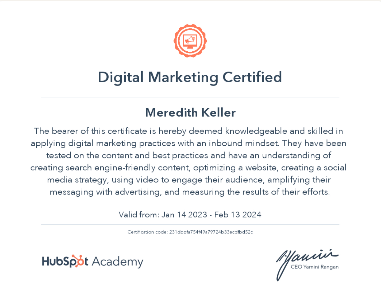 Mastered how to build a content creation framework, find the SEO strategy that fits each business, improve website performance, create quality blog content, utilize paid search advertising, and create high-performing emails.