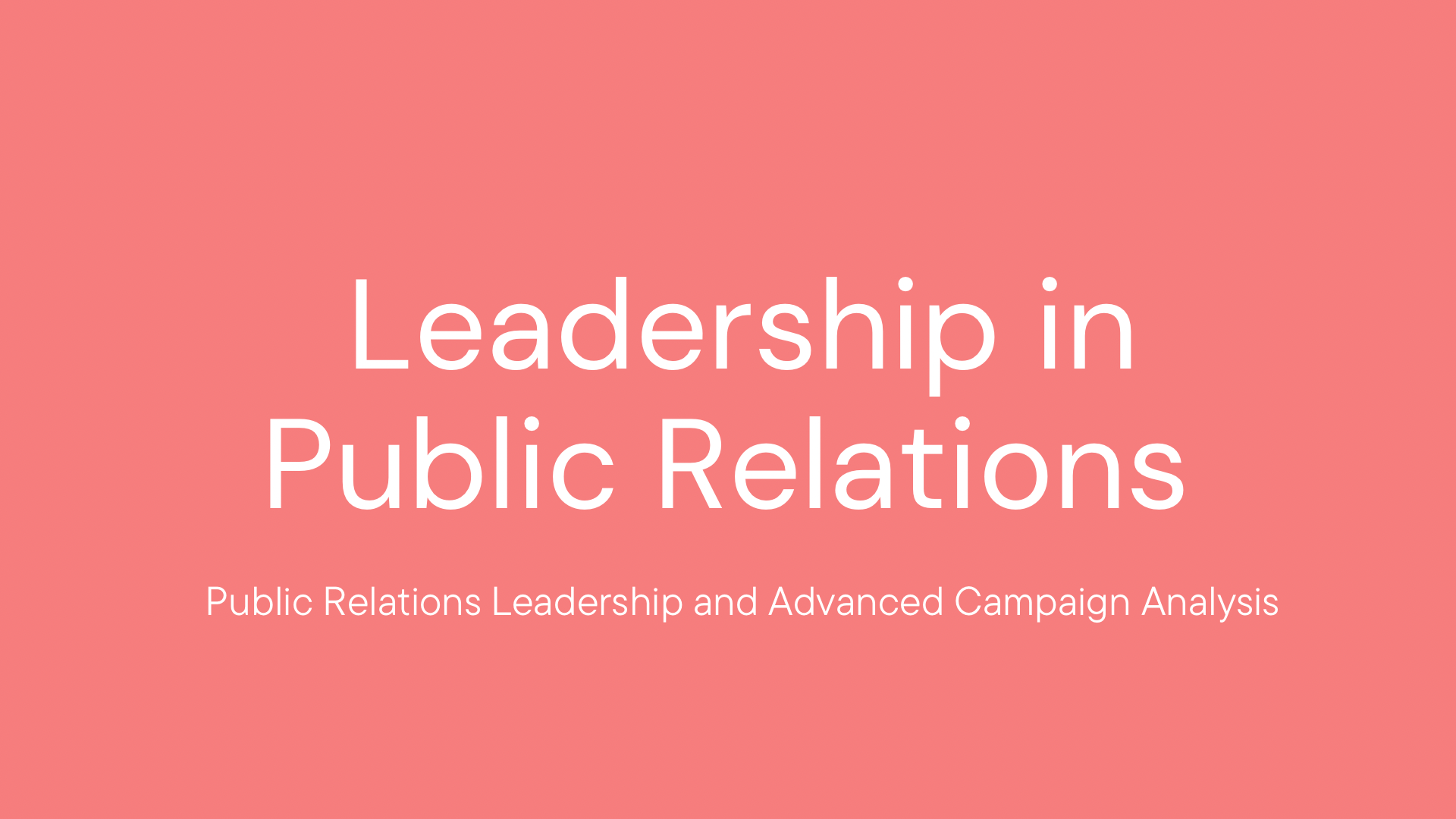 This project unpacks my professional and personal take on leadership within public relations, while also detailing my strengths as a leader and how I can use those to best serve organizations in the future.