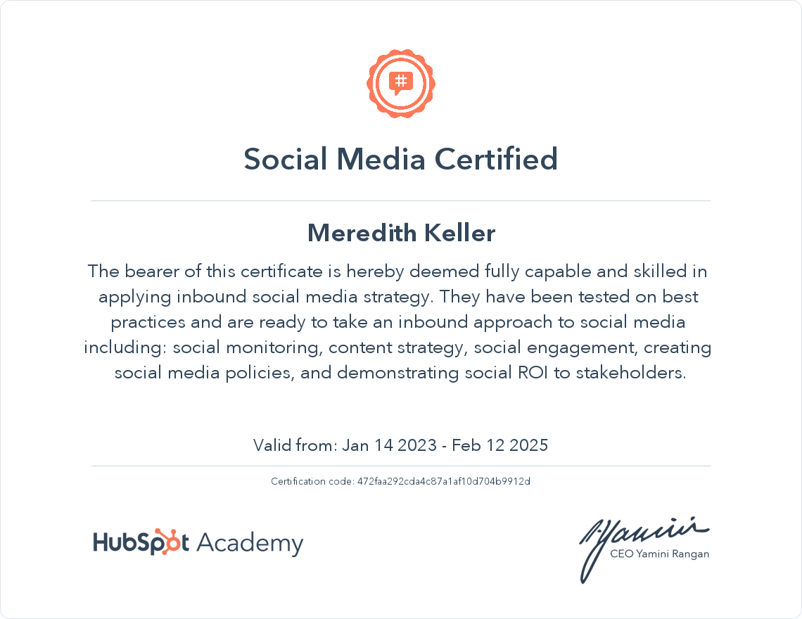 Hubspot Academy’s Certificate in Social Media Marketing (January 2023)
