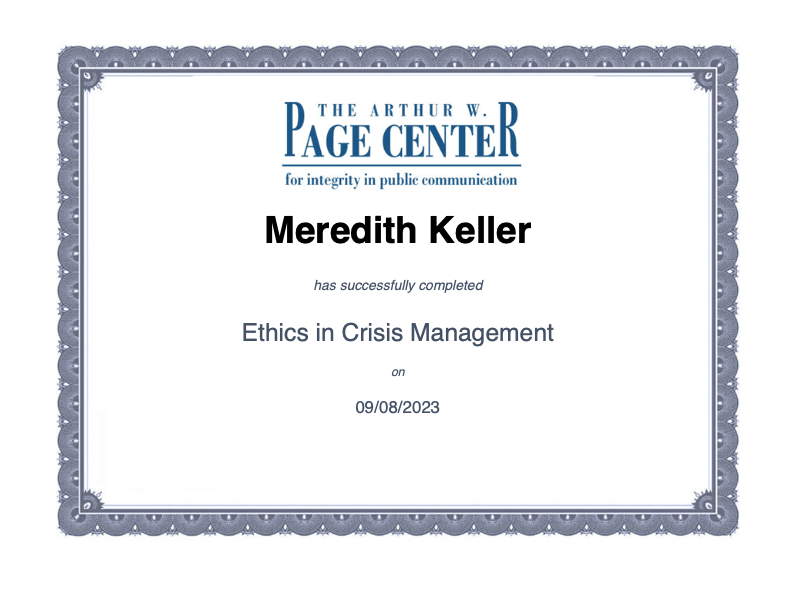 The Arthur W. Page Center Certification for Ethics in Crisis Management (September 2023)