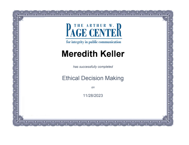 The Arthur W. Page Center Certification in Ethical Decision Making (November 2023)