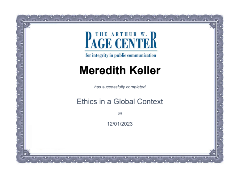 The Arthur W. Page Center Certification in Ethics in a Global Context (December 2023)