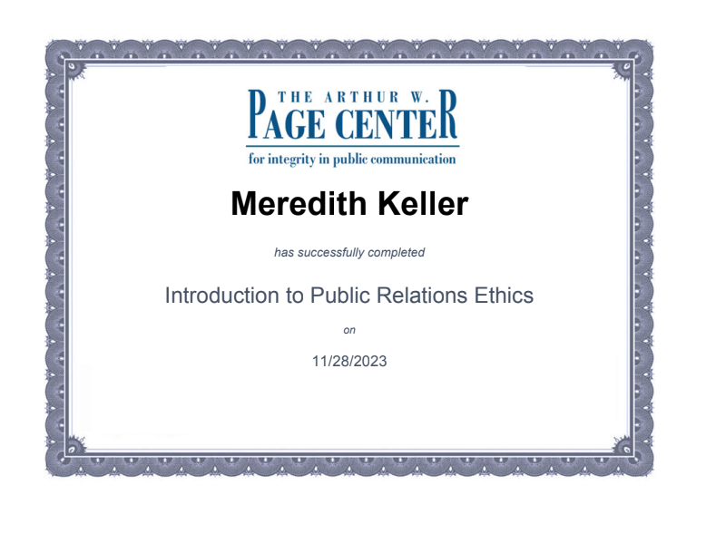 The Arthur W. Page Center Certification in Public Relations Ethics (November 2023)