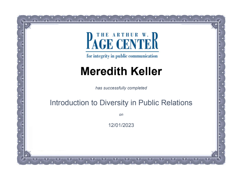 The Arthur W. Page Center Certification for Diversity in Public Relations (December 2023)