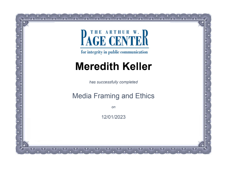 The Arthur W. Page Center Certification for Media Framing and Ethics (December 2023)