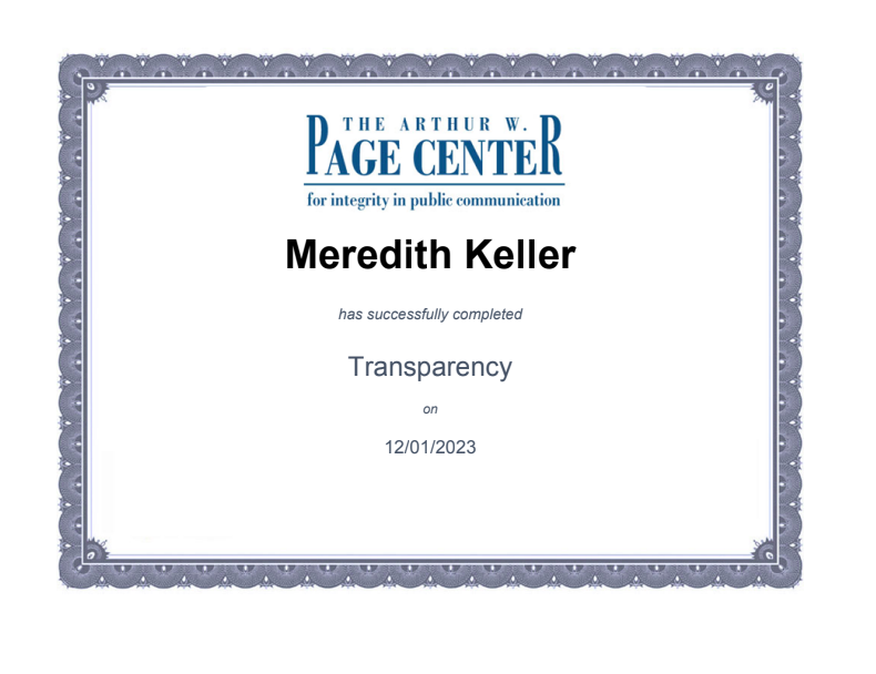 The Arthur W. Page Center Certification in Transparency (December 2023)